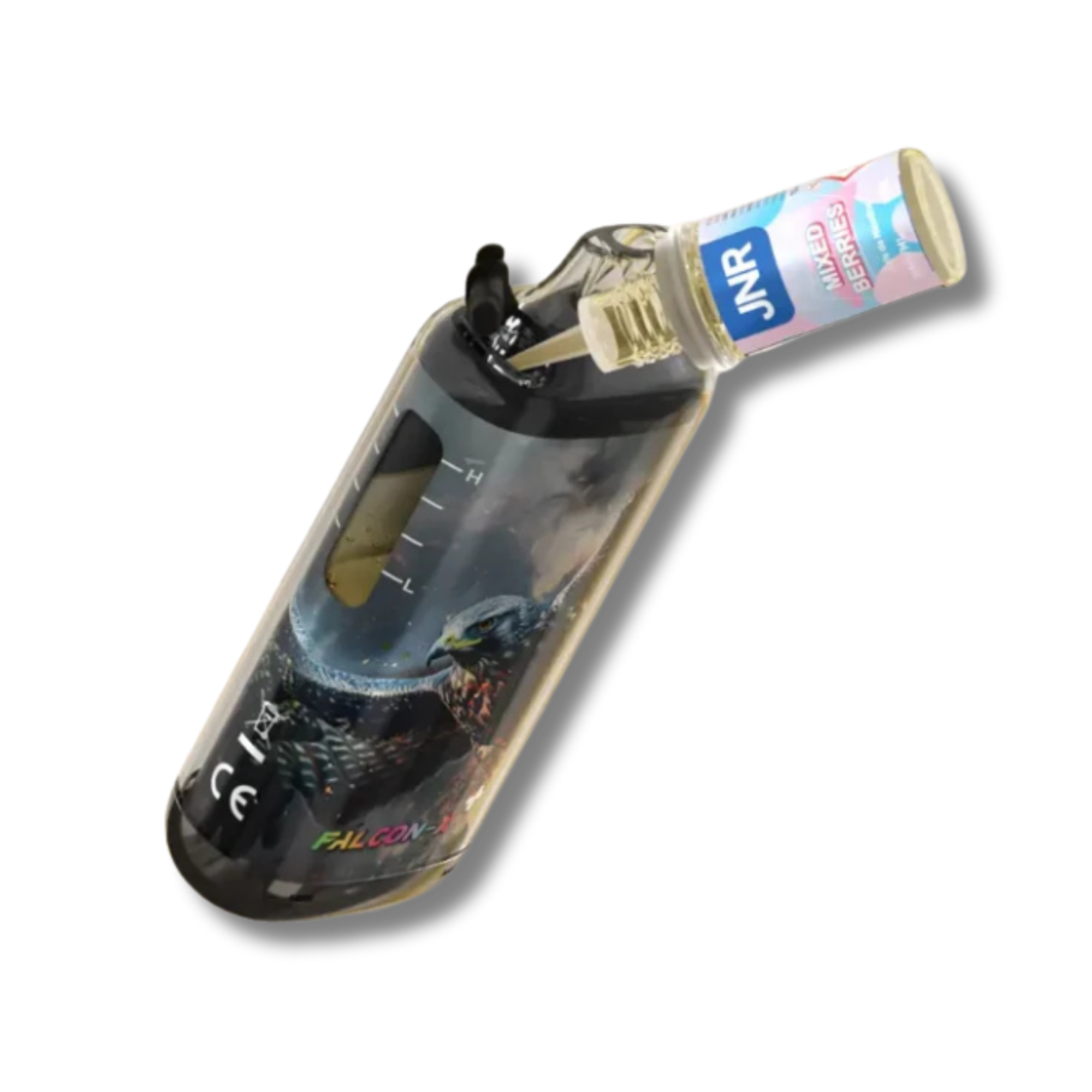 - Contenido de la caja: 1 batería JNR Falcon-X – 2 botellas JNR Falcon-X de 10 ml – 1 manual de usuario